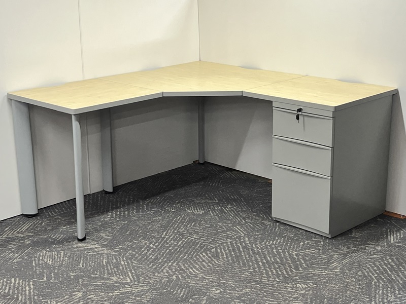 5' x 5' Corner Desk with locking pedestal drawer.available in quantity and different sizes.commercial grade laminate.