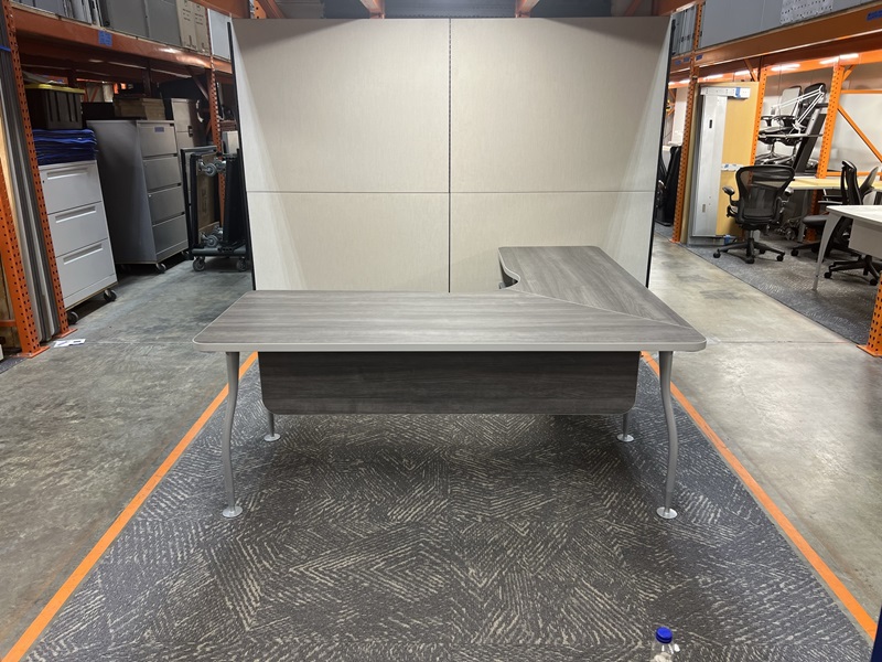 Very sharp looking 6' x 6' office desk with ergonomic design with 3/4 round recessed corner sitting area.unique design, not available anywhere else.
