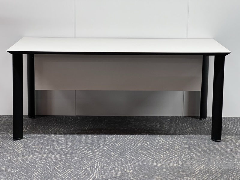 Straight knife edge office desk with modesty.Size is 66" x 30" with a knife edge surface.
